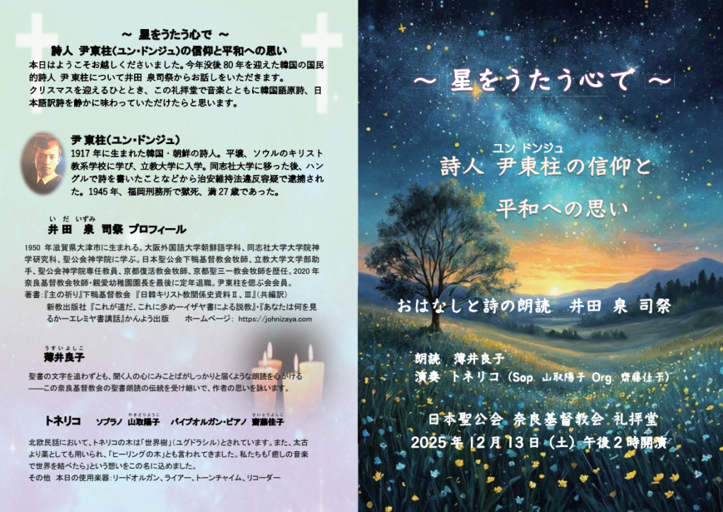 - - 【案内】星をうたう心で ─ 詩人 尹東柱の信仰と平和への思い